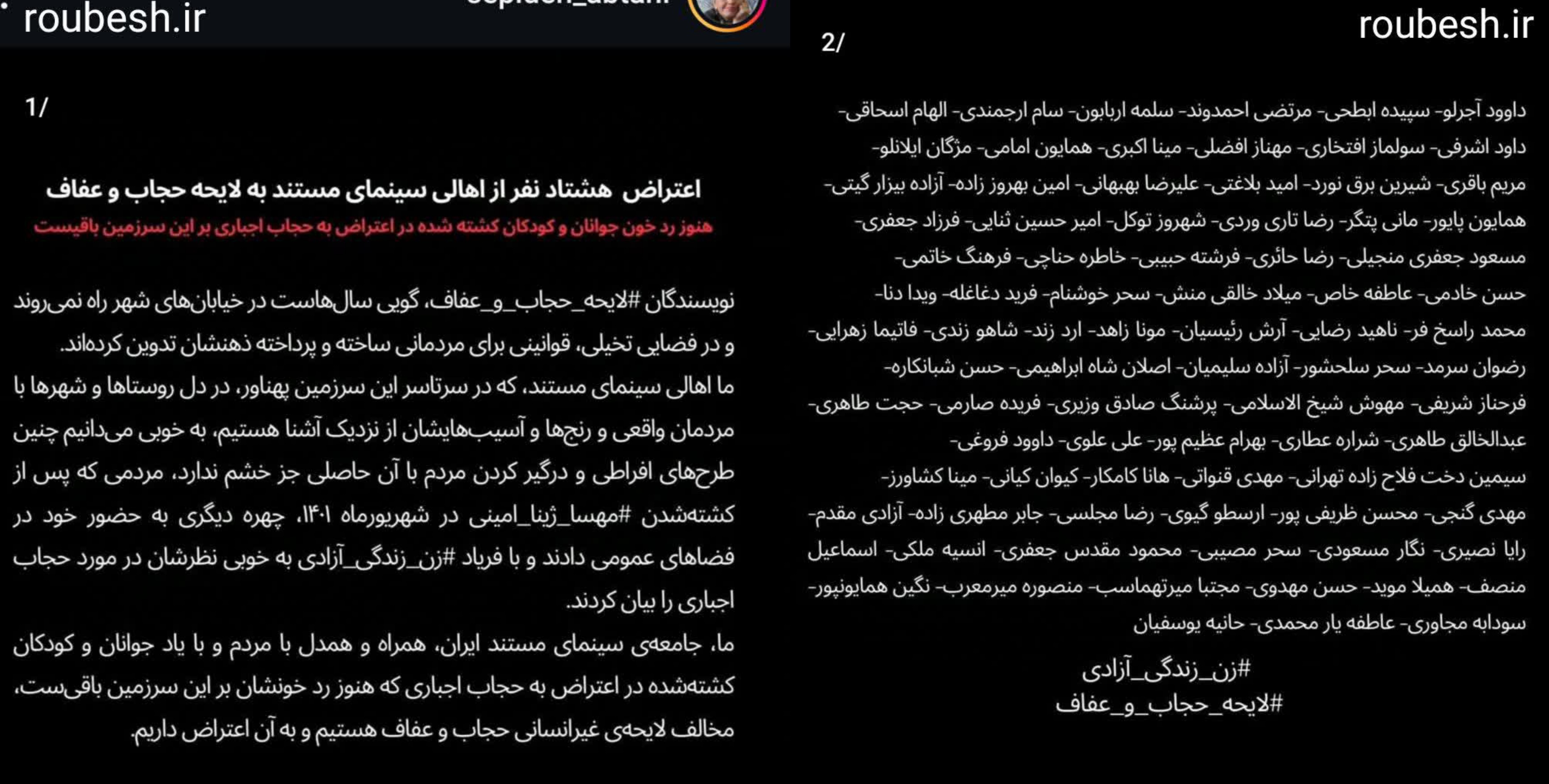 نرجس احمدی/ «سپیده ابطحی» مستند ساز و دبیر انجمن مستند سازان که در ادامه پیوستن هنرمندان به اغتشاشات سال ۱۴۰۱ حجاب از سر برداشته بود در روزهایی که جشنواره سینماحقیقت درحال برگزاری و جمع مستندسازان کشور جمع است از بیانیه و اعتراض هشتاد نفری اهالی سینمای مستند به لایحه حجاب و عفاف در صفحه اجتماعی خود رونمایی کرد!